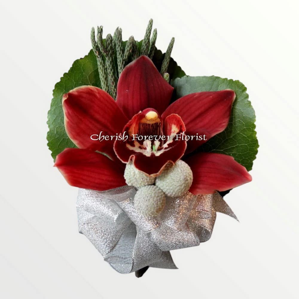 red cymbidium corsage (minimum order : 8 pcs)