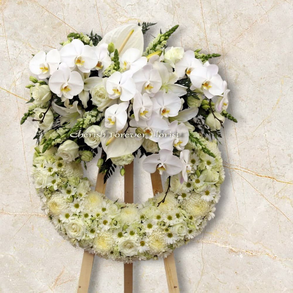 Flower Recipe : Anthurium, white orchid, white lily, white rose, white chrysanthemum, dog flower, seasonal blooms