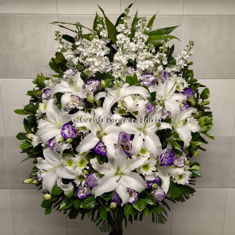 Flower Recipe : Lilies, white musk, white chrysanthemum, eustoma, seasonal blooms
